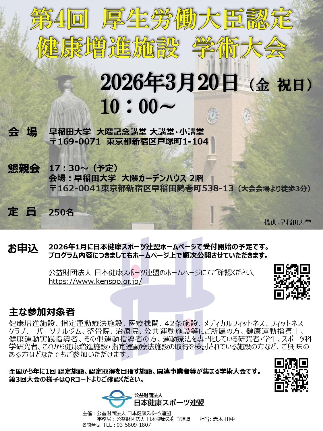 第4回 厚生労働大臣認定 健康増進施設 学術大会 開催日のご案内